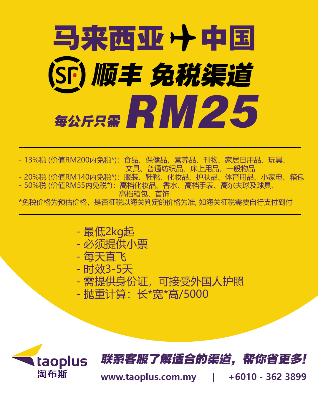 | 马来西亚邮寄到中国,如今更便宜!顺丰免税新渠道上线!